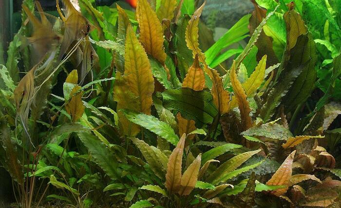 Когда в вашем аквариуме нет или недостаточно света, листья начинают менять свой цвет с зеленого на желтый.