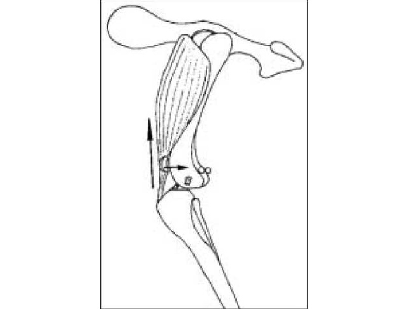Стабилизация коленного сустава осуществляется за счет переноса дистального конца двуглавой мышцы бедра и дистального конца портняжной мышцы на гребень большеберцовой кости. В результате чего при движении коленного сустава остается стабильным, краниального смещения голени не наблюдается.