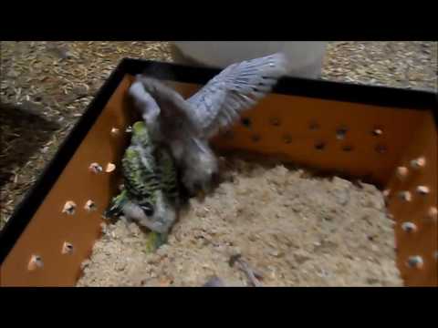 Отсаживание попугайчиков. Птенцы вылетают из гнезда в возрасте приблизительно 35 дней в порядке их вылупления. Некоторые начинают исследовать мир и в чуть более раннем возрасте. Птенцы зеленой и желтой окраски растут более крепкими и зачастую вылетают из гнезда, только начав оперяться. В то время как птенцы голубой и синей окраски, как правило, наоборот более нежные и еще долго сидят в гнезде после того, как полностью оперились. Очень забавно наблюдать за полулысой, похожей на маленького орленка птичкой, которая, тем не менее, пытается взлететь, смешно топорща крыльями. И летает! Но в этом возрасте даже уже полностью «одетые» птенцы после вылета из гнезда еще не способны к самостоятельному существованию. Их будут еще недели две подкармливать родители.