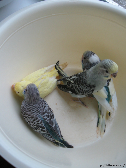 Отсаживание молодых попугайчиков.