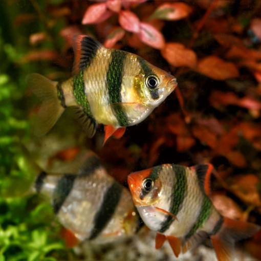 Суматранские барбусы – очень активные и подвижные рыбки. Кроме того, это стайные рыбы и держать их необходимо стайкой из 5-10 особей. В стае рыбки чувствуют себя уверенней, у них складывается своеобразная иерархия, они меньше способны задирать других рыб, так как им всегда есть чем заняться внутри своего коллектива.