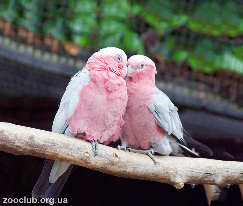 В вольере постоянно должна находиться посудина с водой для купания, которую меняют по мере загрязнения. Розовых какаду кормят 2 раза в день утром и вечером.