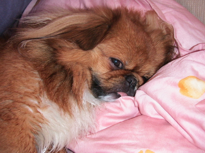 Пигмент феомеланин бывает разнообразных оттенков – от желтого до красного. Наличием цвета феомеланина обусловлена интенсивность распространенного среди пекинесов рыжего окраса – от светлого палевого до рыже-красного.