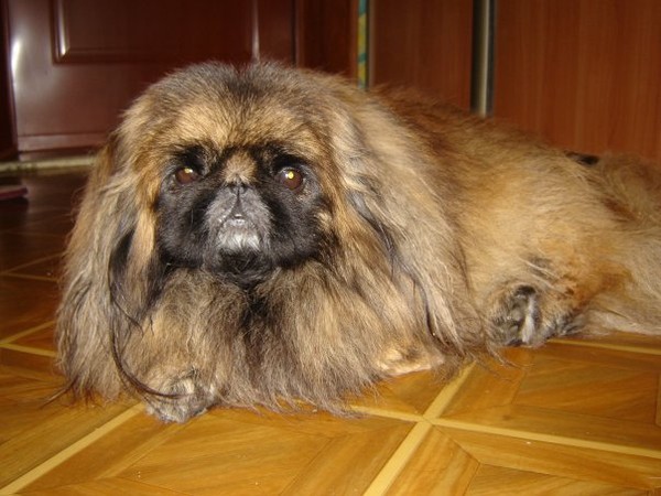 Серый окрас пекинесов варьируется от светлого до темно-бурого, почти черного.