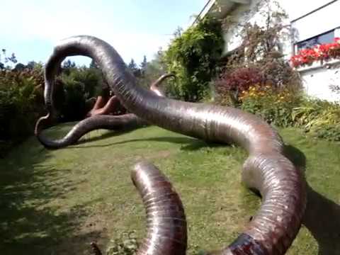 Медуза – пойманная самка питона, живущая в Канзас-Сити, штат Миссури, является самой длинной змеей в мире. Обычно требуется 15 человек, чтобы просто поддержать ее. От 24-дюймового детеныша питона до 25-футового гиганта Медуза выросла с феноменальной скоростью за 8 лет. Она выживает на ежедневном рационе из 40 фунтов мяса, состоящего из кроликов, свиней и грызунов.