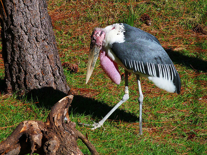 Могучий аист марабу, способный вырасти до 66 дюймов в длину, возвышается над другими видами птиц. Как и многие аисты, марабу — падальщик, и его странная голова без перьев — приспособление, позволяющее избежать грязного оперения при питании тушами животных. Аист-марабу съест все, во что попадет когтями, включая человеческие отходы, такие как обувь, и, если его побеспокоить, набросится на него. Сообщения о детях, убитых марабусом, нередки в его родной южной Африке.