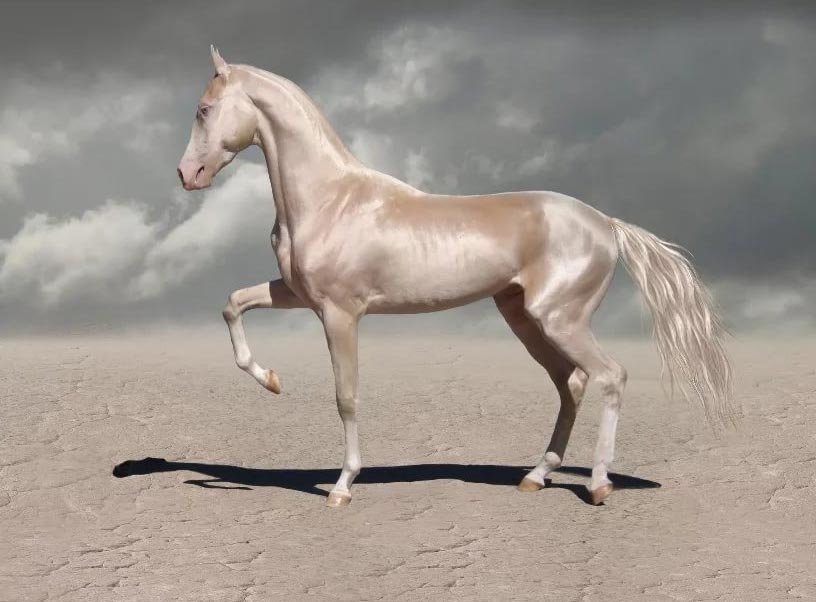 Ахалтекинская лошадь или ахалтекинец. Она выведена примерно 5000 лет назад на территории Ахал-Теке (современная Туркмения).