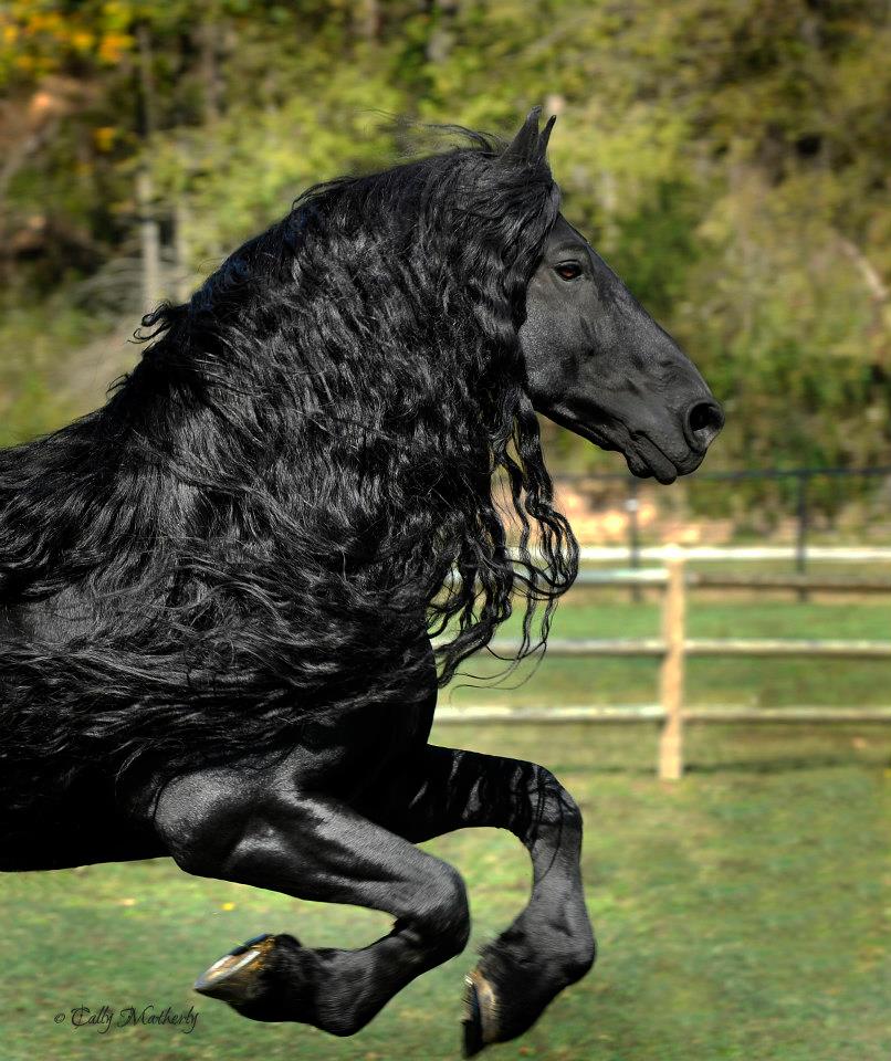 Фризская лошадь или Фриз. Порода была выведена в XVI-XVII веках в Фрисландии (провинция на севере Нидерландов) путём скрещивания местной тяжелой «холоднокровной» породы с испанскими лошадями в период оккупации Испанией территории Нидерландов. Они имеют название» черные жемчужины», ведь фризская лошадь ̶ одна из самых красивейших упряжных пород. Фриз неоднократно бывал на грани вымирания, однако был спасен нидерландскими коневодами.