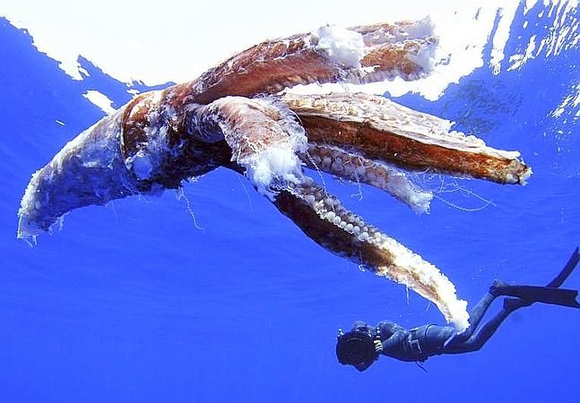 До 2005 года никто никогда не видел живого гигантского кальмара. Были найдены только мертвые гигантские кальмары. 30 сентября 2004 года исследователи из Японии сделали первые снимки живого гигантского кальмара в его естественной среде обитания. [5] Несколько из 556 фотографий были опубликованы годом позже.
