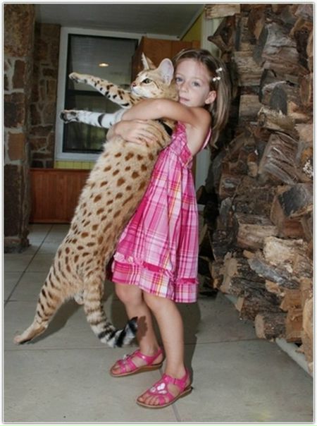 Кошка породы СаваннаДлина кошачьего туловища представителей породы саванна может достигать 1 метра!