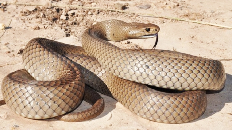 Тайпан Маккоя обитает в полузасушливых районах центральной части Австралии и является самой ядовитой змеей в мире.