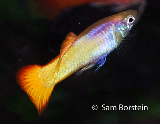 Вверху: самка гуппи. Фото Сэма Борштейна.