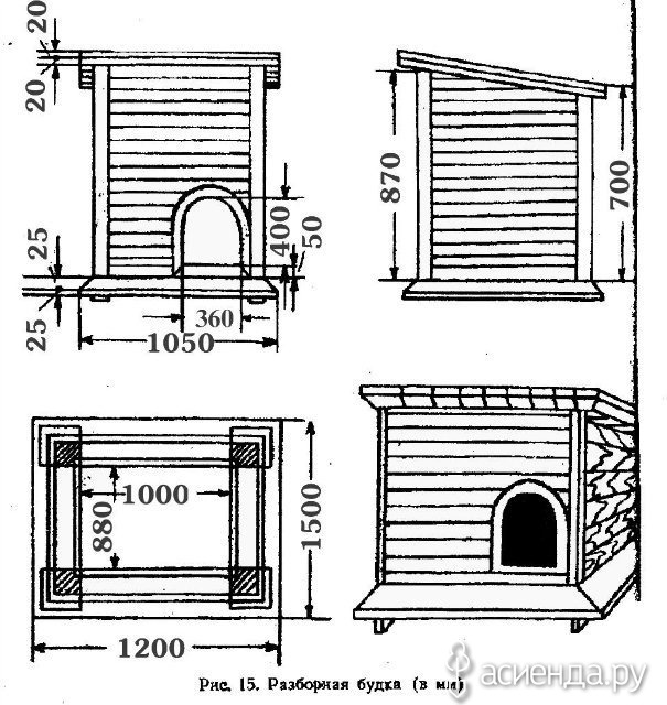 чертеж и размеры конуры для постройки своими руками, и как сделать проживание комфортным