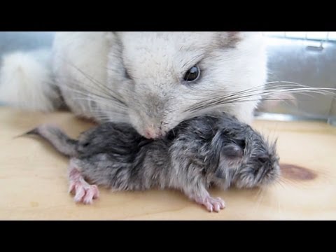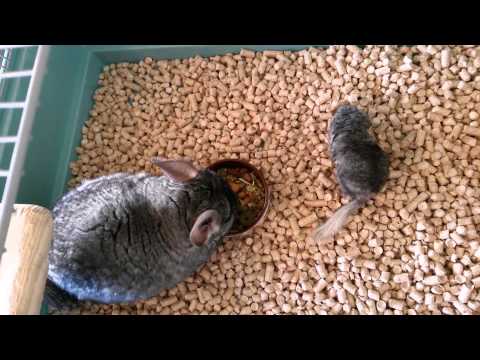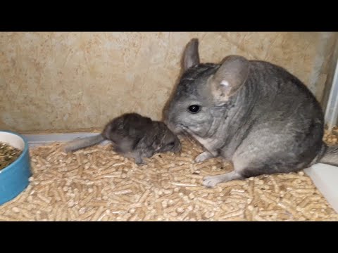 Другие проблемы включают размер шиншилл и цвет. 903:35 Беременность длится около 111 дней, и самка обычно рожает двух детенышей. Роды обычно происходят утром, и проблемы возникают редко. Любопытно, что шиншиллы поедают плаценту своих детенышей. Детеныши рождаются с открытыми глазами и ушами, полностью покрыты мехом и имеют зубы. Молодняк начнет есть твердую пищу в возрасте двух недель. Груминг