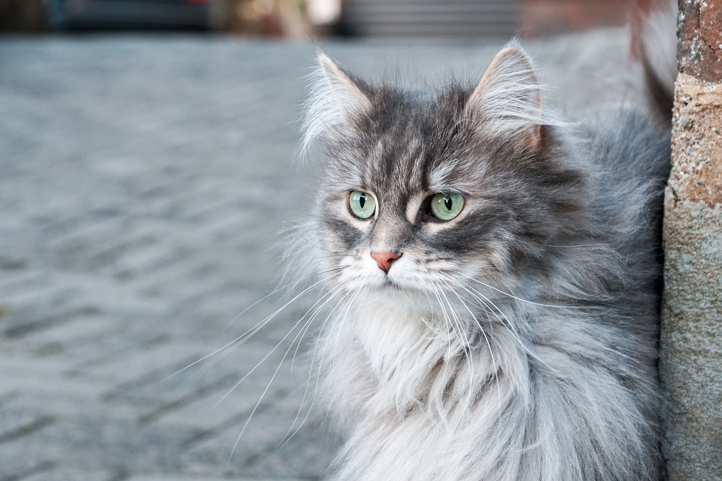 Серо белый пушистый кот