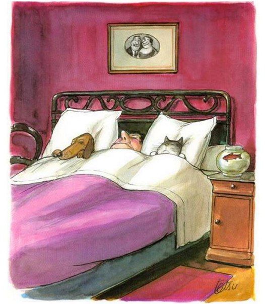 ⦁ Питание и психологическое состояние. Сытые и спокойные питомцы спят долго и крепко, находящиеся же в состоянии перевозбуждения – спят беспокойно или не могут заснуть вообще.