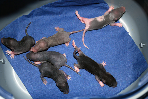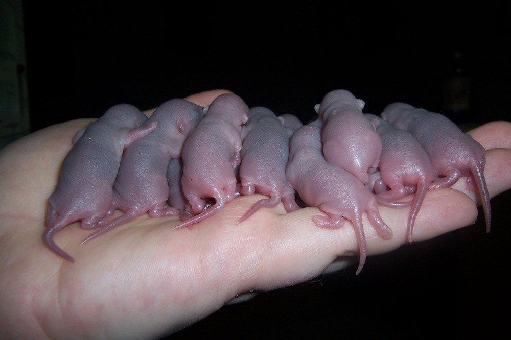 Крысята рождаются на свет лысыми, они не видят и не слышат, а только двигают конечностями и открывают ротики в поисках соска. Материнское молоко малыши находят по запаху.