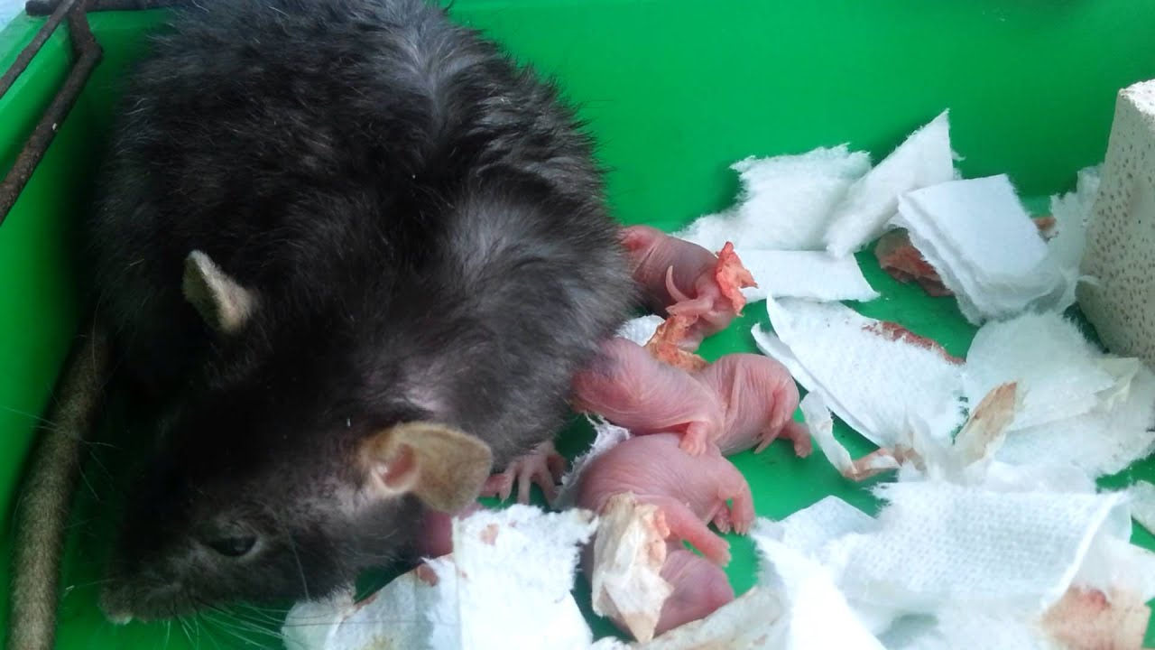 Даже опытным заводчикам редко удается увидеть, как рожает домашняя крыса. Этот процесс происходит преимущественно ночью и длится не более 2 часов. Зачастую владельцы даже не знают, когда именно появились на свет детеныши.