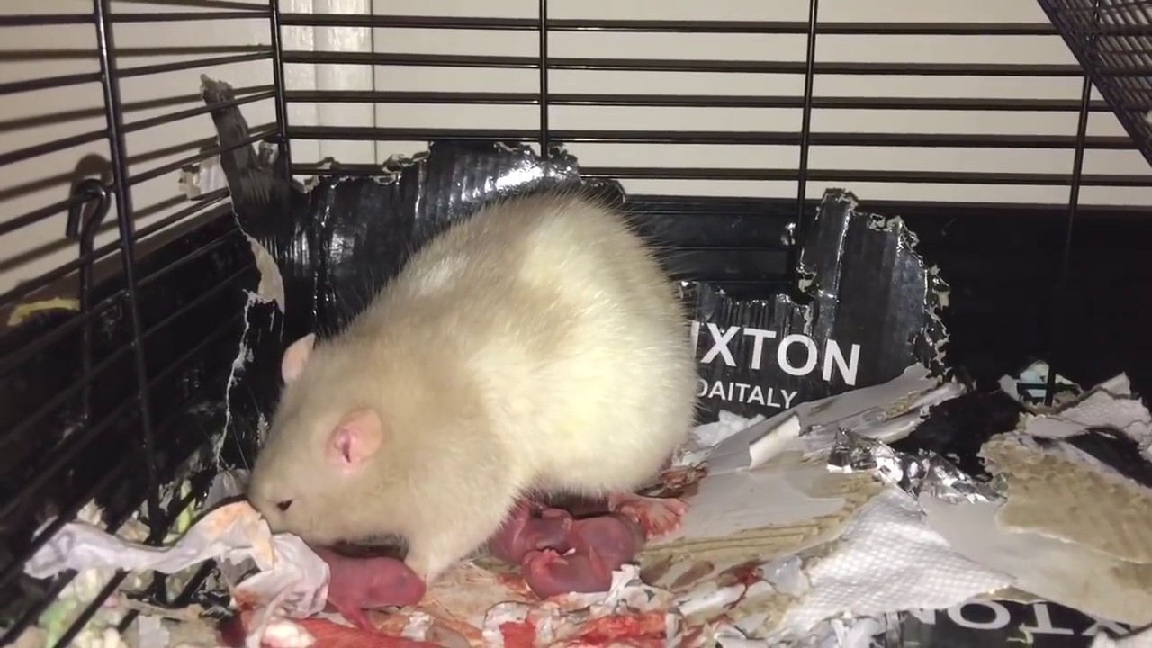 Когда крыса рожает, ресурсы ее организма сильно истощаются. И чтобы выкормить детей, самка должна хорошо питаться. Из-за нехватки питательных веществ, а особенно белка, она может съесть выводок.