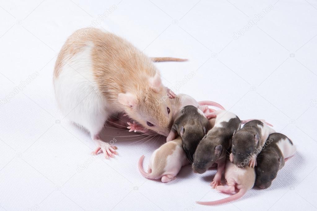 Самка способна позаботиться о потомстве. Она постоянно находится в гнезде, где кормит, вылизывает и согревает крысят. Нужно создать благоприятные условия для содержания семьи грызунов. В помещении не должно быть сквозняка и шума. Желательно ограничить доступ к клетке других домашних животных и маленьких детей.