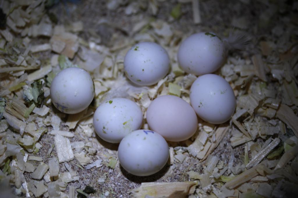 Яйца отложены, будущая мама сидит в гнезде. Через 8-10 дней после выкладки хозяин может узнать, какие из них оплодотворены, а какие пустые.