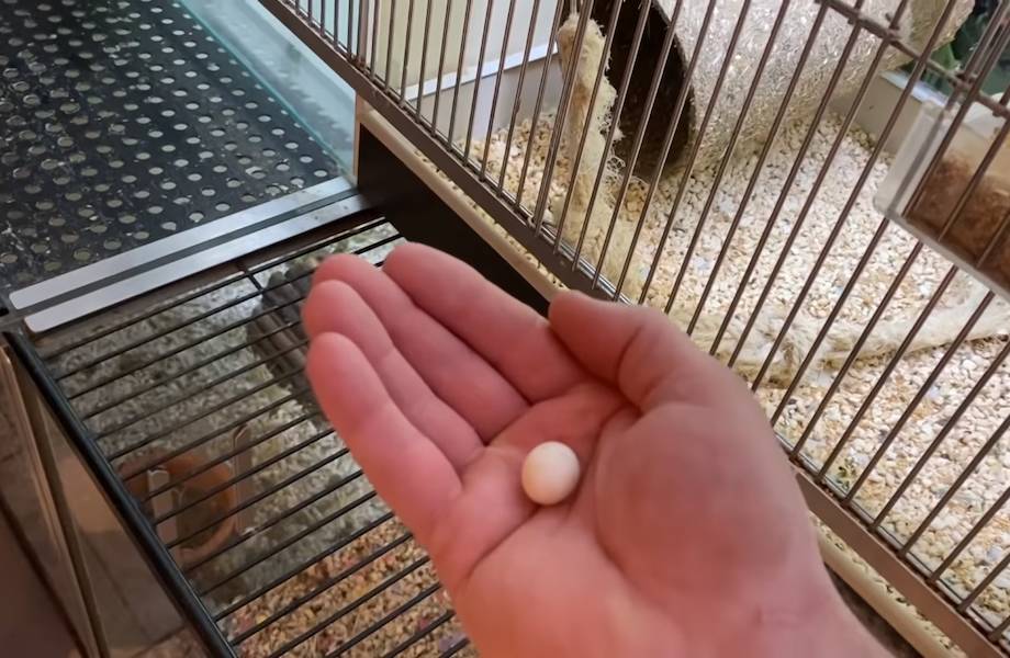 — в период размножения самка снесла яйцо в углу клетки, а не в гнезде.