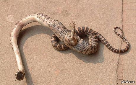 Четвероногая змея ест мышь