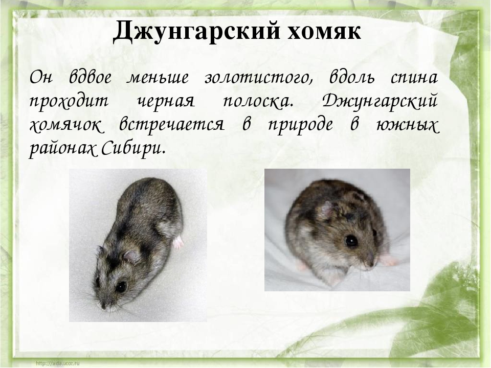 Интересные факты о джунгарских хомяках