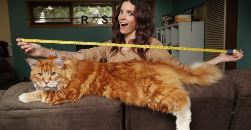 Длина самого крупного кота в мире составляет 123 смИзмерять длину мейн-куна следует, когда он находится в спокойном состоянии. Общая длина измеряется от кончика носа головы до основания хвоста. Стандартные размеры свидетельствуют, что развитие животного происходит правильно.