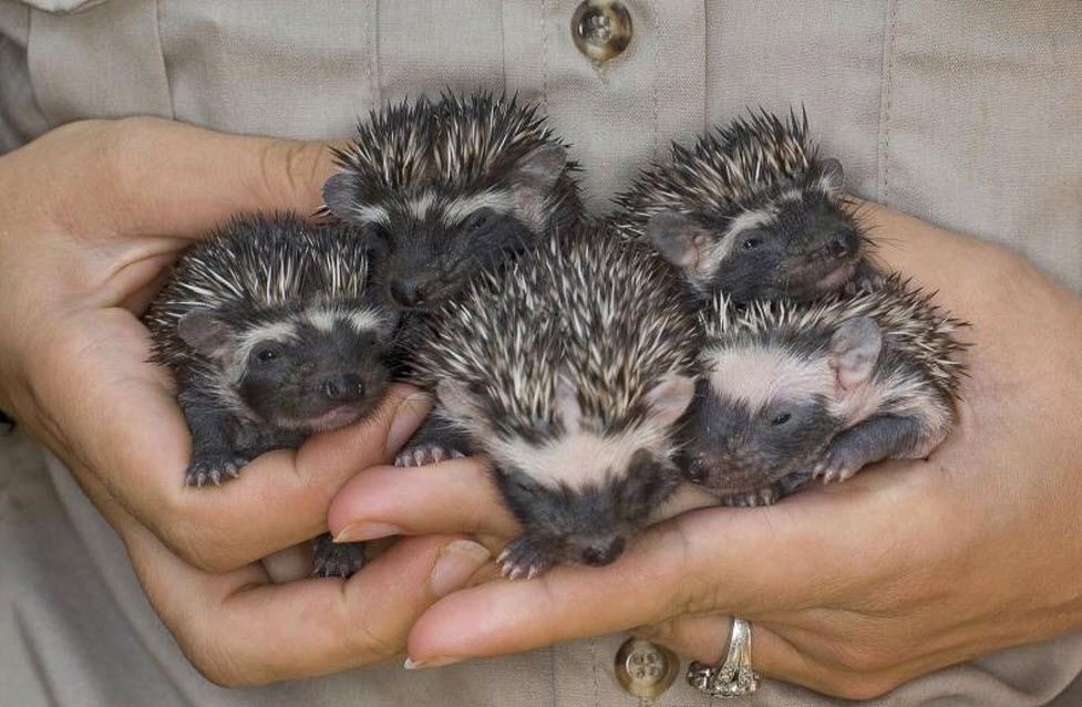 Беременность самки ежа около 1 месяца. Обычно у нее одновременно рождается четыре или пять детенышей, также известных как «свиньи».![]()