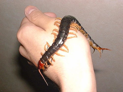 В большинстве своем все пострадавшие от сколопендры получают укус, потому что вовремя не заметили притаившуюся охотницу и случайно наступили или задели ее. Впечатляющая внешность насекомого мало у кого вызывает желание познакомиться поближе. Если так уж случилось, и вы все же стали жертвой гигантской многоножки, наложите не тугую шину на пострадавшую конечность (если это конечность). Яд разрушается под воздействием щелочей, поэтому если под рукой окажется крепкий раствор пищевой соды, промойте им ранку и сделайте примочки. После этого обязательно отправляйтесь в больницу.