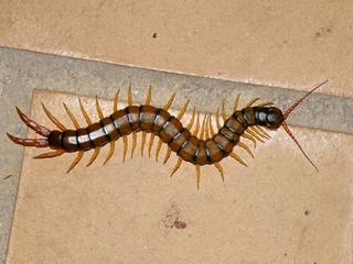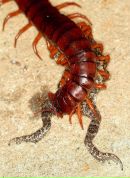 Это гигантская сколопендра (Scolopendra gigantea). Встречаются особи с длиной тела в 33 см. Есть описания случаев смерти в результате укуса гигантской сколопендры, но они вызывают серьезные сомнения. Из трех случаев смерти, два были во время гражданской войны, а в третьем случае девочку сколопендра укусила в голову. В азиатских странах страх к сколопендрам очень глубоко укоренились в сознании людей. В Бирме, многие мужчины имеют татуировку на предплечье в виде сколопендры и , якобы, это является надежной защитой от их яда.