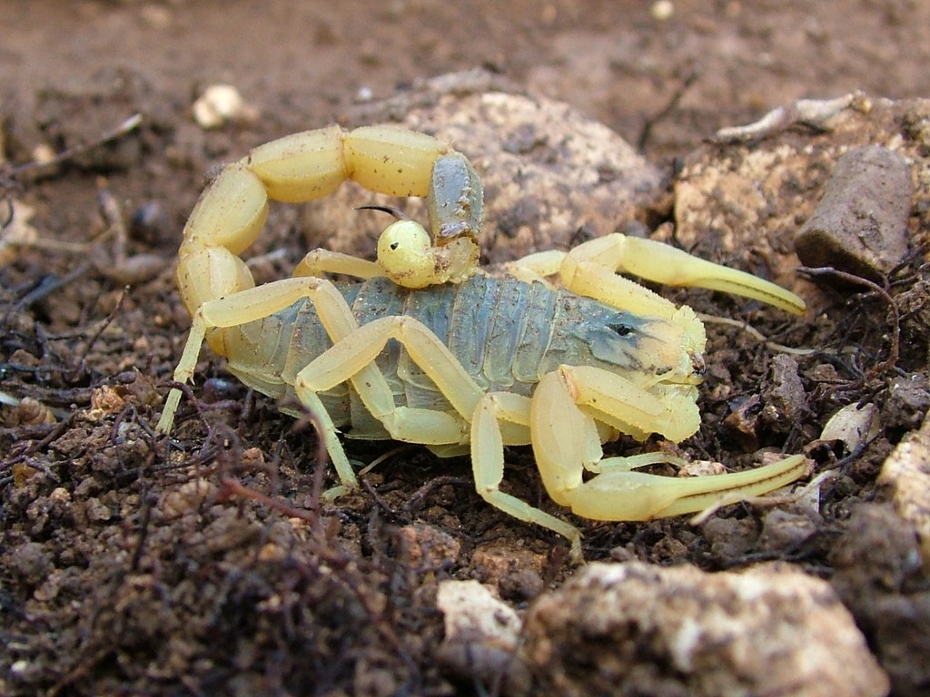 Источник изображения: Викимедиа. Встречается в Северной Африке и на Ближнем Востоке. Это родственник желтохвостого скорпиона и скорпион среднего размера. Он может охотиться на насекомых, пауков, ящериц и мелких грызунов. Желтый толстохвост известен своим агрессивным темпераментом и смертельным ядом.