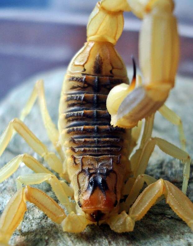 Укус этого скорпиона не приведет к смертельному исходу, но встречу с ним человек, несомненно, запомнит на всю жизнь.