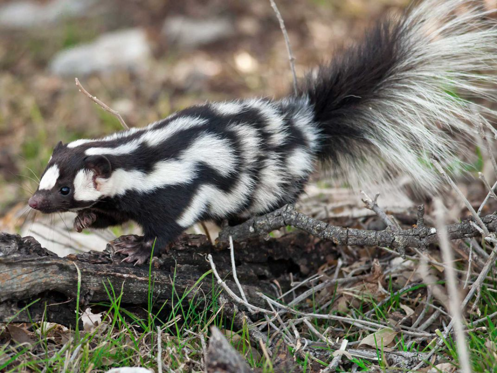 Восточный пятнистый скунс — единственный скунс, который может лазить по деревьям, согласно ADW.