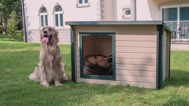 Там собака может наблюдать за происходящим либо отдыхать, если вдруг в домике ей станет жарко.