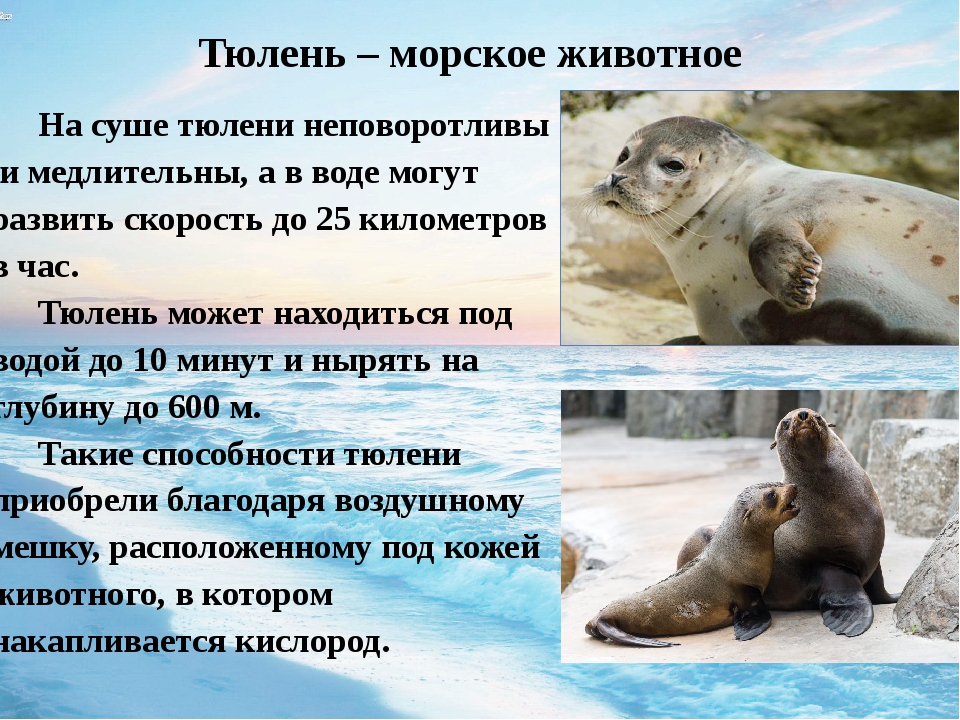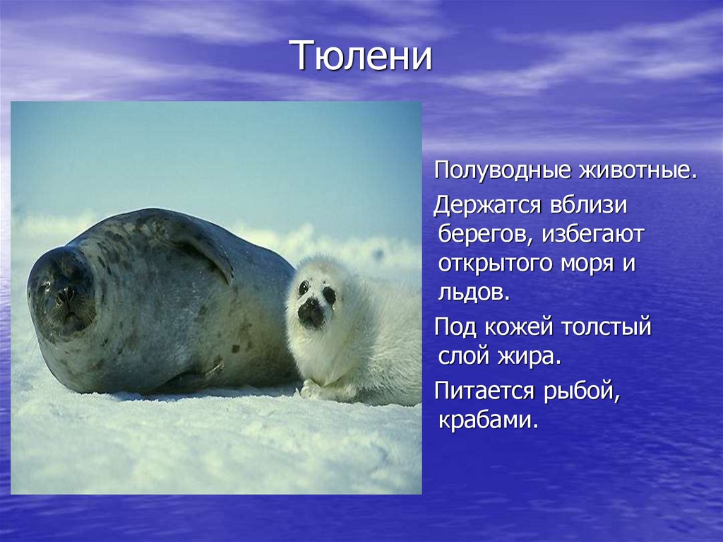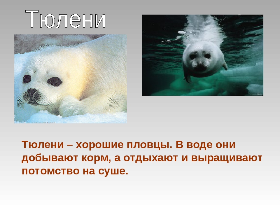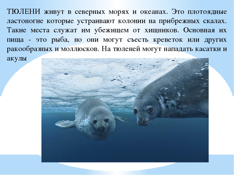 Тюлени — хищные животные, приспособленные к жизни в море. Большинство