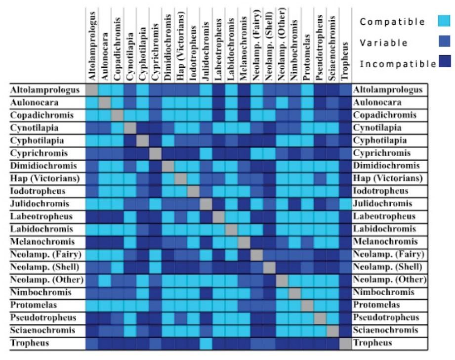 Большинство таблиц совместимости рыб не учитывают разницы температур воды, поэтому изучите индивидуальные потребности рыб. Посмотрите мои профили пресноводных рыб , так как на моем сайте задокументировано много популярных видов.