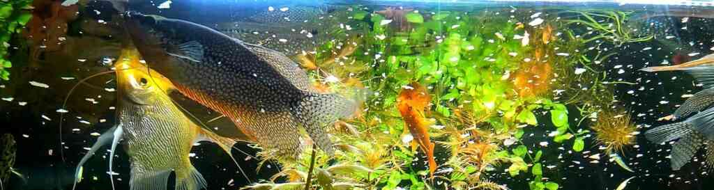 Скалярии и анциструсы происходят из одного географического региона, поэтому вполне могут встречаться вместе даже в природе. Оба вида отлично уживаются, не устраивают драк, и прекрасно дополняют друг друга.