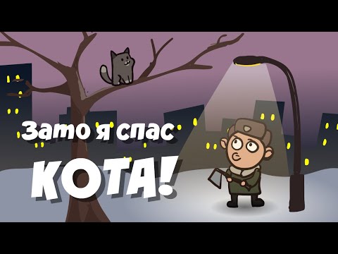 Позже в голове у Игоря созрел план Б с топором в главной роли. Солдат решил срубить высоченное дерево вместе с котом на верхушке. Практически идеальному плану помешала линия электропередач, которая задержала ствол на полпути к земле. Шокированный Барсик бросился на провода, получил ободряющий заряд тока, рухнул в снег и ускакал в темноту.