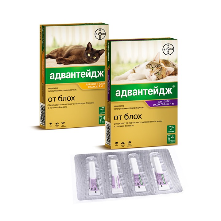 Адвантейдж (advantage) капли от блох и клещей на холку для кошек — Инсектоакарицидные средства/противопаразитарные — Каталог — Хатико