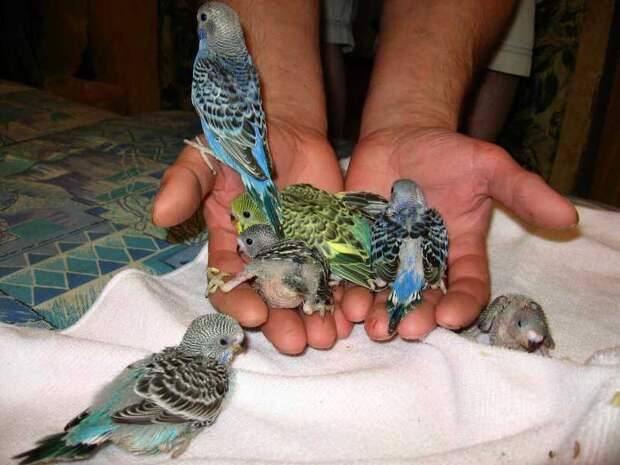 Владельцы помогают птицам в выведении потомства. Всё это сильно облегчает жизнь волнистых попугаев и увеличивает её срок.