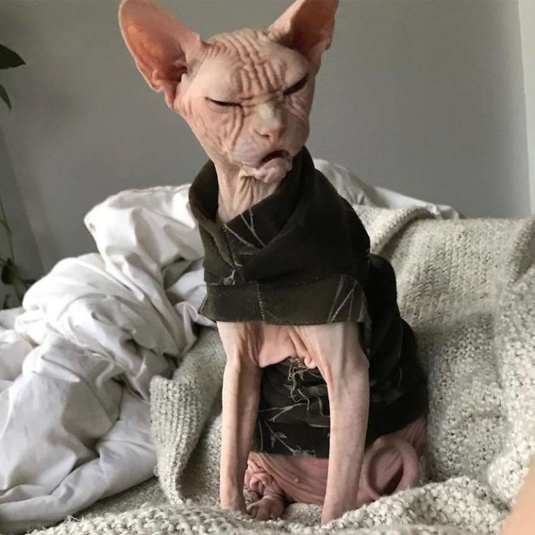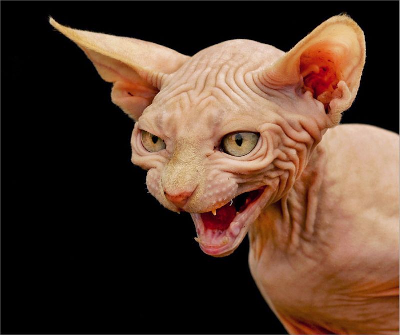Это худой, с большими ушами и клиновидной мордой, тип кошек, с которыми редко обнимаются или дружат в популярной культуре. Действительно, лысые кошки — или те, у кого нет верхней шерсти — вероятно, уступают только черным кошкам по частоте, с которой их неправильно понимают и используют для обозначения опасности, чего-то нереального или жуткого.