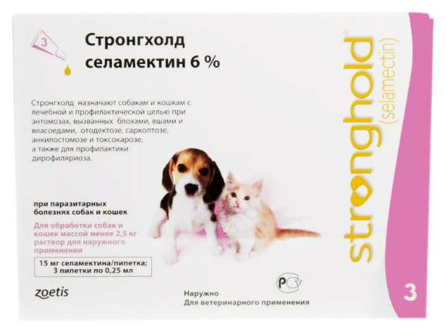 Стронгхолд 15 мг для котят и щенков массой до 2,5 кг, цена за 1 пипетку