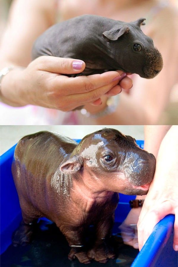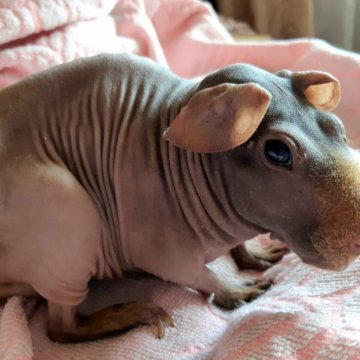 Справедливости ради стоит отметить, что существует две породы бесшерстных морских свинок – это скинни и болдуин. Свинки болдуин генетически значительно отличаются от скинни, они рождаются полностью покрытыми шерстью, но по мере взросления полностью лысеют (процесс облысения начинается уже на 5 день после рождения). Поэтому болдуин – действительно полностью голые морские свинки.