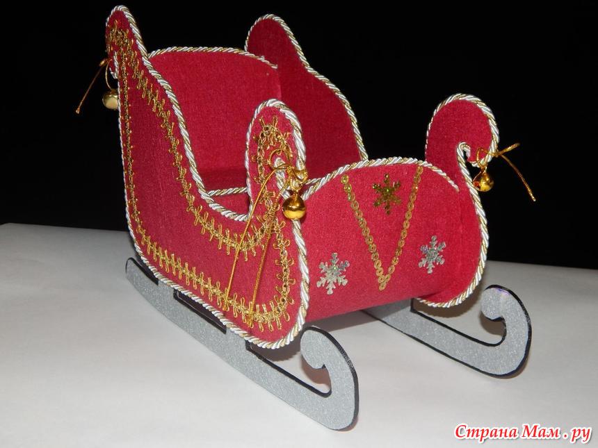 Сани Деда Мороза -замечательная идея для украшения новогоднего интерьера,для упаковки подарочков или для фруктов и сладостей на праздничный стол.