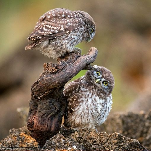 Детеныши сычей, только вылетевшие из гнезда, с интересом охотятся на насекомых.