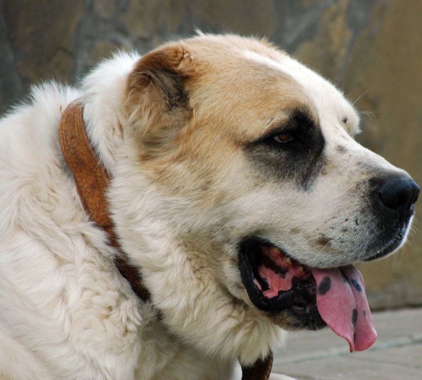 Морде алабая не свойственно сужаться к носу. Толстые верхние губы немного висят, прикрывая крепкую и большую челюсть.