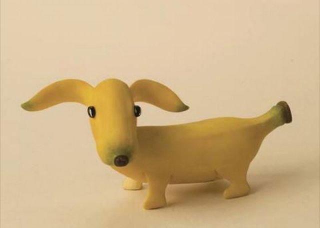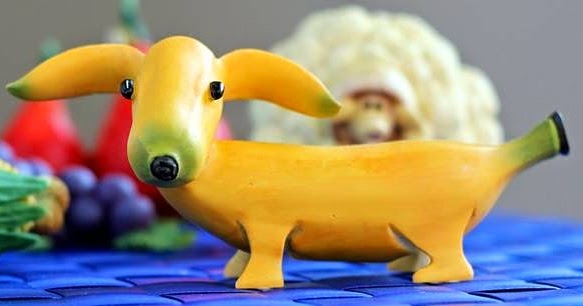 Мордашка таксы готова. - 4. И, наконец, зубочистками аккуратно прикрепляем голову к туловищу, и «Банановая такса» начинает радовать детишек!