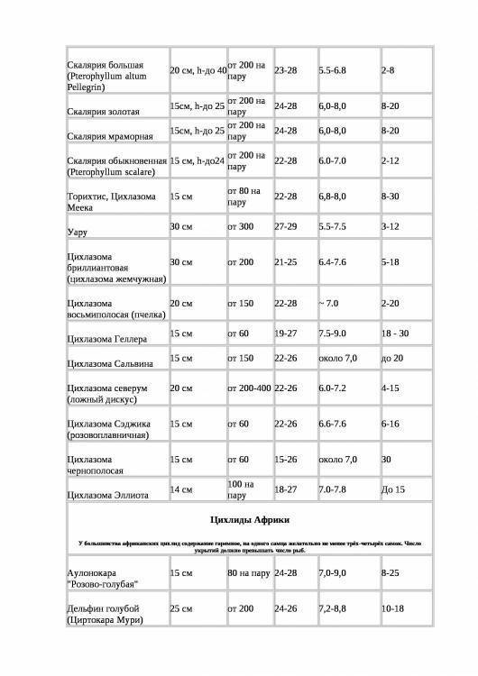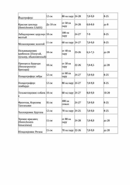 | Цихлиды | +25С — +27С | +23С | +30С |